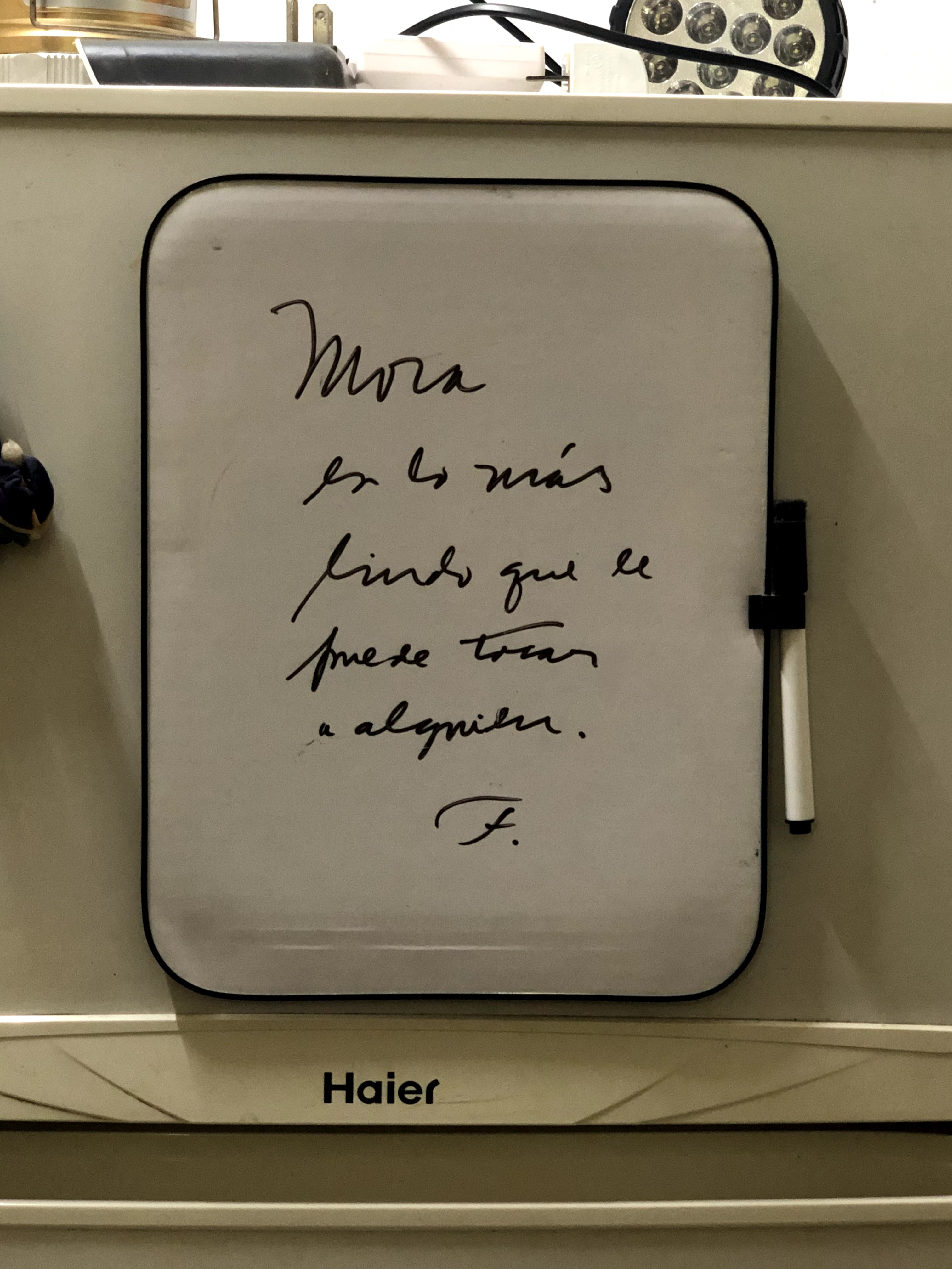 We then went to visit Mora. I first met Mora when we visited in 2017, when Fernando proudly showed us around Habana vieja and told us countless stories. We visited them during the book fair where they showcased their writings. Fernando had passed away since our last visit. She spoke so lovingly of Fernando and his memory. I noticed the board on the fridge and had to take a photo of Fernando’s writing: “Mora is the most beautiful thing one could have.” I hope to have a love like that one day… I think and pray for her often.